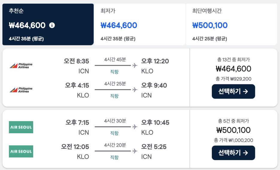 보라카이 직항 항공권 비교 - 필리핀항공으로 결정한 이유